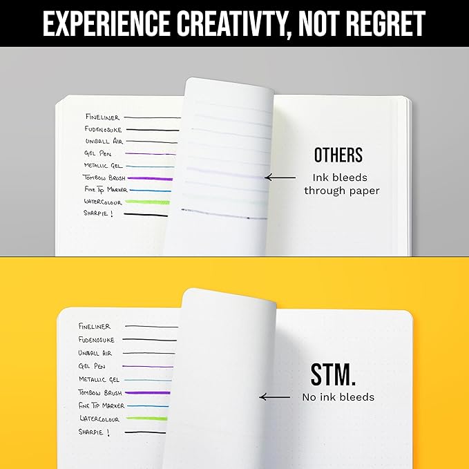 - ULTRA THICK ZERO BLEED PAPER: Enjoy zero bleed-through, zero ghosting, and zero feathering on 160gsm (ultra-thick) paper for heavy mediums such as markers and paint whilst 120gsm (thick) paper is perfect for pens, fountain pens, highlighters etc.