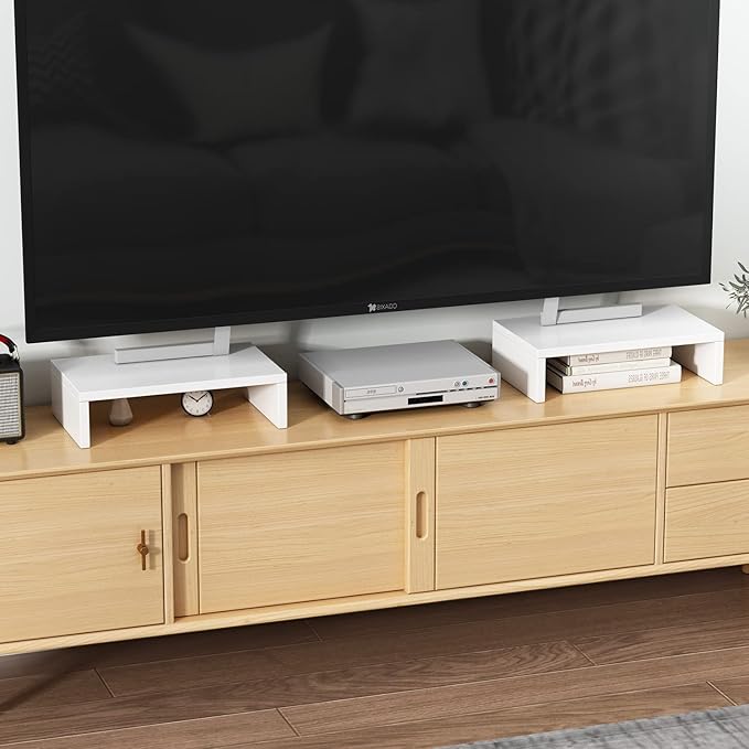 TEAMIX White Monitor Stand Riser - 2 Pack, Wood 2 Tier Adjustable Dual Monitor Riser for Laptop/PC Computer Stand for Desk