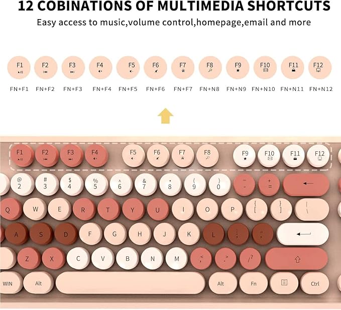 FOPETT Keyboard and Mouse Sets Wireless,Reliable 2.4 GHz Connectivity for PC,Laptop,Smart TV and More (Milk Tea Color)