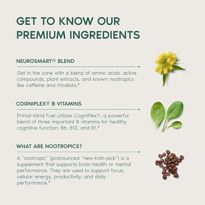 - Created with a Neurosmart Nootropic Blend: Formulated with 11 cognitive-supporting nootropic ingredients, Primal Mind Fuel helps support your ability to focus and stay engaged