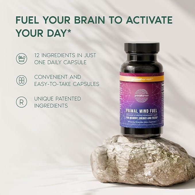 Brain Supplement by Primal Harvest, Primal Mind Fuel Brain Booster for Focus, Energy, Clarity, and Brain Health 30 Capsules Nootropics Brain Support Supplement for Men and Women