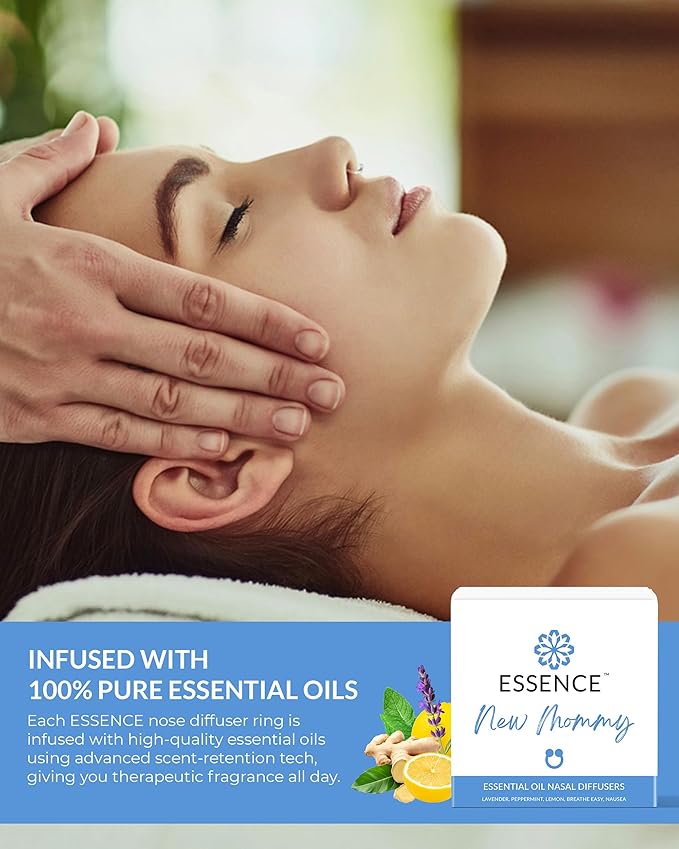Essence Nasal Diffuser New Mommy Bundle – Essential Oil Silicone Nose Rings for Morning Sickness & Motion Sickness Support – Wearable Blends Pack for Pregnancy & Travel