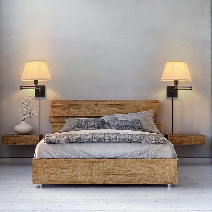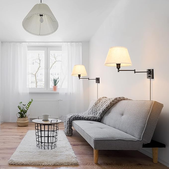 - Flexible Swing Arm Wall Sconce: Adjust swing arm from left and right 180 degrees freely, two arms can be adjusted horizontally 270 degrees, extend well, so you can freely adjust the angle of lighting to meet your lighting needs.
