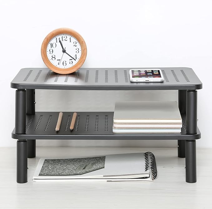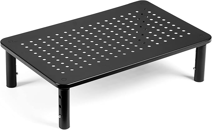 - ★ Ventilated Platform Increased Airflow Prevents Overheating monitor stand: Large sturdy platform with vented holes, this stand will prevent overheating and keep the device running cool. Our adjustable monitor riser is made of podwer coated steel with a perforated mesh hole platform that improves air flow going towards your device. The holes also help to prevent dreaded overheating and keep your computer cool and in peak working condition