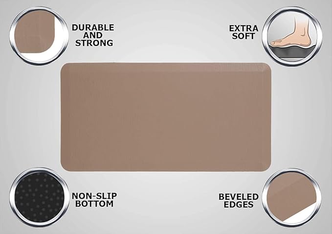 Mabel Home Anti Fatigue Floor Mat- 3 Size(20x32 & 20x39 & 24x70),16 Colors - Standing Desk Mat-Kitchen Floor Mat-Stain ResistantHome Non-Slip Bottom, Extra Soft (Brown, 20" x 32")