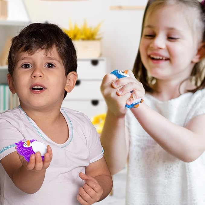 - CLASSIC SQUEEZY TOYS: Penguin puffers that spark smiles with every squeeze! This pack comes with a SET OF 12 puffer penguins in an assortment of bright colors. You’ll get 3 purple, 3 pink, 3 black, and 3 blue puffer toys for vibrant play.