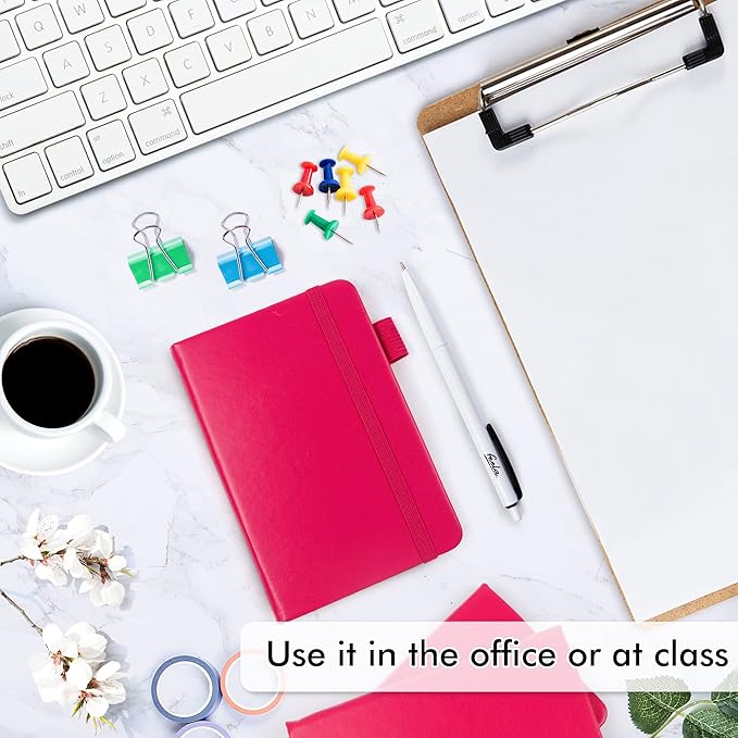 feela 3 Pack Pocket Small Notebook Journals, Mini Cute Memo Notepad Hardcover College Ruled Lined Journals with Pen Holder for Women Girls Office School, with 3 Black Pens, 3.5”x 5.5”, A6, Berry