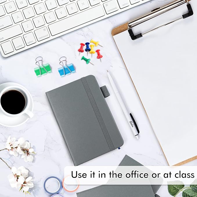 feela 3 Pack Pocket Notebook Journals with 3 Black Pens, A6 Mini Cute Small Journal Notebook Bulk Hardcover College Ruled Notepad with Pen Holder for Office School Supplies, 3.5”x 5.5”, Gray
