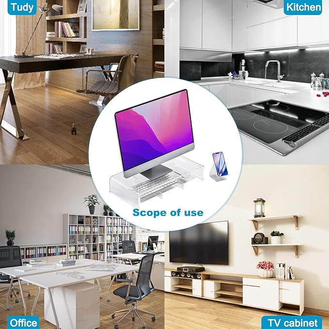 - Meet the ergonomics design: it can be raised to a height of 4 inches, so that the monitor and laptop can get the best vision, and it can reduce neck and eye fatigue. Even if you work, study, and play for a long time, you will not feel uncomfortable. Suitable for family study, office, living room, classroom, conference room and so on.
