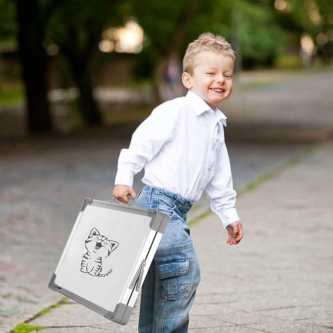 - PORTABLE & SELF-STANDING - The portable design with handle is convenient for you to carry around. This portable dry-erase easel with a self-standing design is perfect for small-group learning activities and leaving messages. It's a great learning tool for your office, school classroom, home, or any commercial space, even traveling or camping.