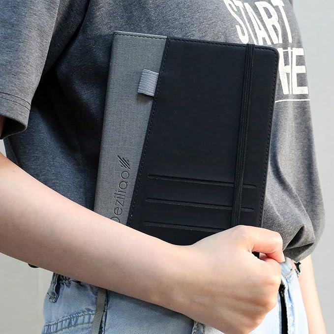Deziliao Lined Journal Notebooks with Pen Loop, Hardcover Notebook Journal for Work, 100Gsm Premium Thick Paper with Inner Pocket, Medium 5.7''''x8.4'''', ?Black, Ruled, 1 Pack