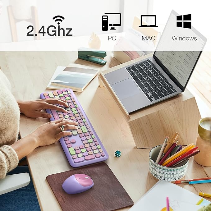- 【Gorgeous Cute Design】MOFii wireless keyboard and mouse combo, stylish multi-color style design, makes your work full of fun and outstanding in the office.