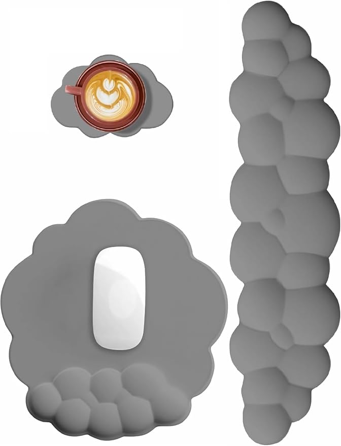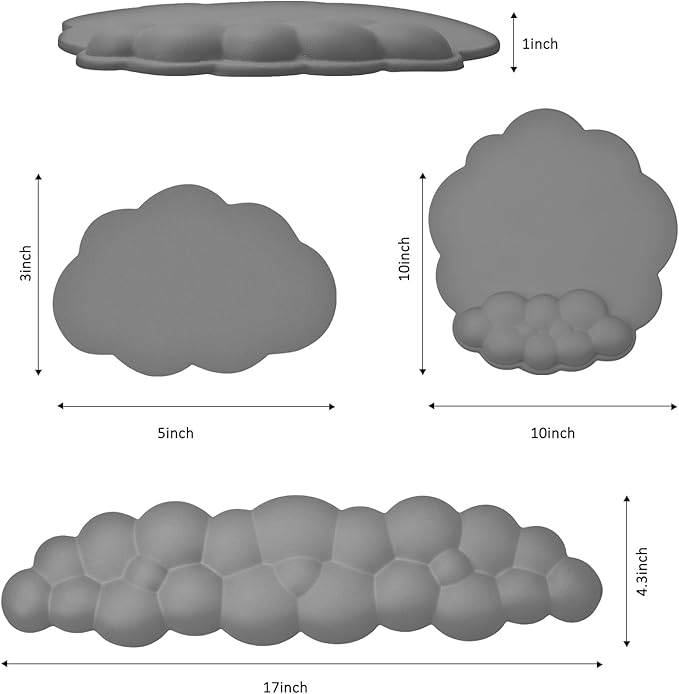 - Cloud-shaped Design: This keyboard wrist rest and mouse pad set features a unique cloud-shaped design, offering an ergonomic fit that perfectly supports your hands. The textured surface enhances airflow, keeping your wrists cool and comfortable while preventing sweat or discomfort during extended use. Stylish and functional, these aesthetic desk accessories make the perfect companion for both work and study sessions, adding a touch of charm to your workspace