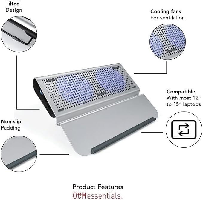 OTM Essentials Aluminum Large Laptop Riser Stand for 12"-15" Laptops, 15.5" x 11.5", Gray (OB-A2C)