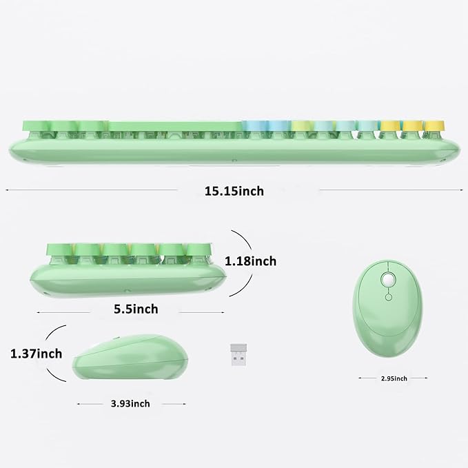 Wireless Keyboards and Mouse Combos, UBOTIE Colorful Gradient Rainbow Colored Retro Typewriter Flexible Keyboard, 2.4GHz Connection and Optical Mouse