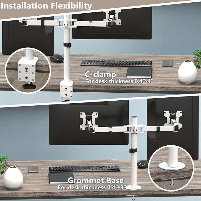 - Package Includes: 1 x WALI Dual Monitor Mount (White), Mounting Hardware Kit, User Manual, experienced and friendly US based customer support available to assist 7 days a week