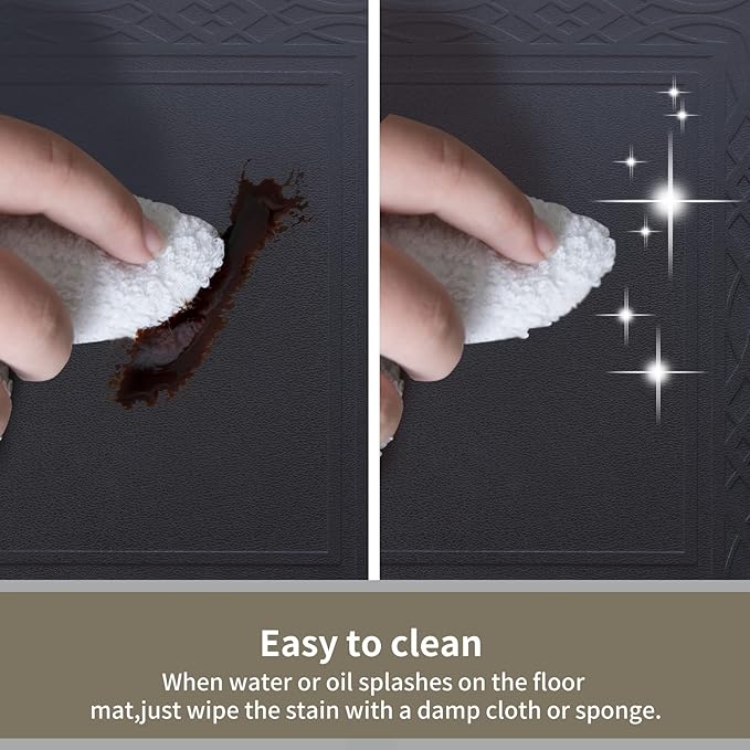 - EASY TO CLEAN stain resistant and waterproof material makes Broad i Home Anti Fatigue Mat easily wipe clean and will not collect dirt. Novel innovation of natural wood grain pattern designs on the top of our comfort mat makes you be immersive