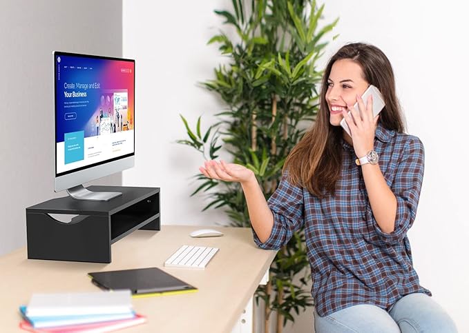 - Save Your Space: Get rid of the messy desks! 2-Tier monitor risers provide more storage space to keep your workstation organized and tidy. It can store many office supplies such as books, notebooks, earphones, power banks, paper, etc.
