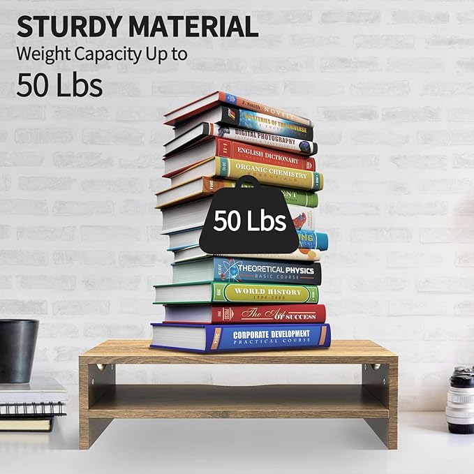 - Save Your Space: Get rid of the messy desks! 2-Tier monitor risers provide more storage space to keep your workstation organized and tidy. It can store many office supplies such as books, notebooks, earphones, power banks, paper, etc.