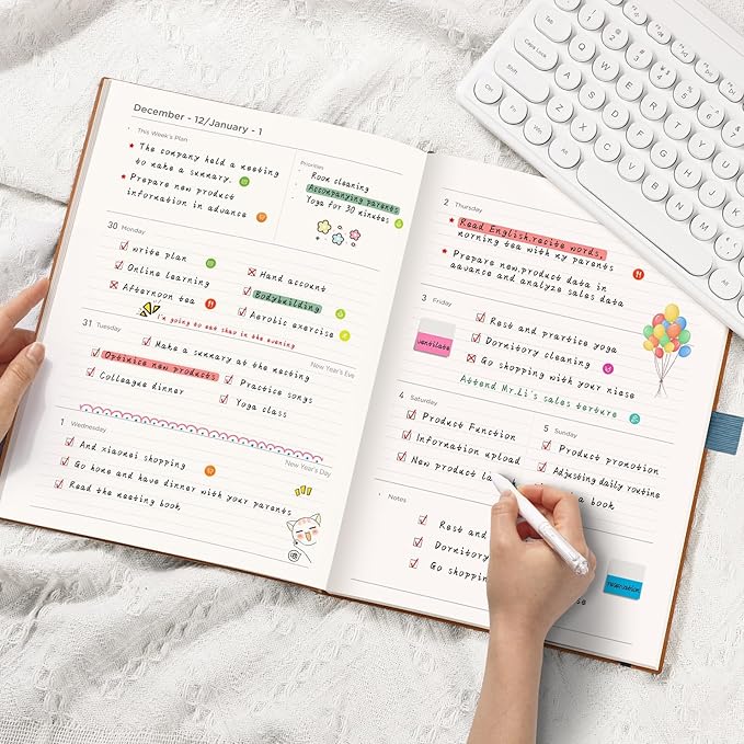 - Weekly Planning: Each week includes sections for priorities, notes, and ample lined writing space. It allows you to write down your daily to-do list, important appointments, ideas, and more, ensuring efficient organization and productivity