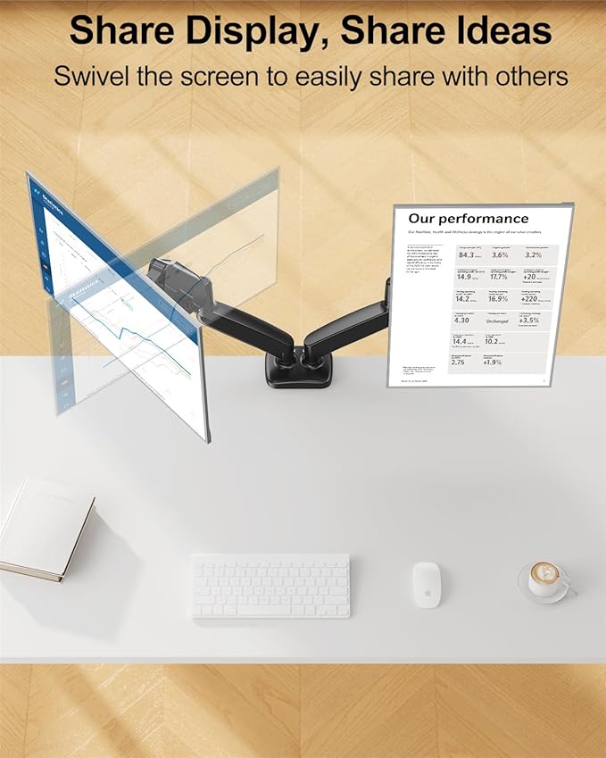 - Discover The Most Productive Self - Have you felt inconvenient and ineffective while working with 2 screens? MOUNT PRO Gas Spring Dual Monitor Stand offers You A Perfect Solution! The full-motion construction of the dual monitor arms allows for smooth, effortless rotation and positioning in any direction. Better still, you can now work comfortably at your desk for long hours without stiff necks or back pain.
