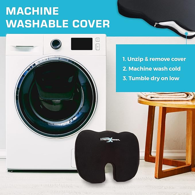 - [Convenient Cleaning] This office chair cushion for butt comes with a black mesh cover that isn't all looks, it's breathable & machine washable too, remove the zippered cover & toss it in the wash for an easy clean sciatica pain relief pillow