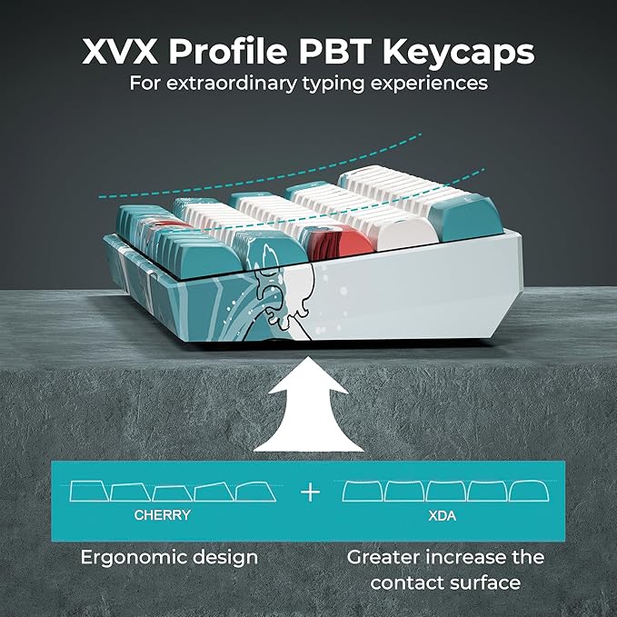 - 【Great Wave Off Kanagawa Ergonomic Keyboard】This 60 percent keyboard is with unique Xvx Profile PBT keycap and themed shell, showing the coral sea pattern in 360 degrees, which have excellent touch experience and long serving time.The colorful design can bring a more pleasant mood to games or work.