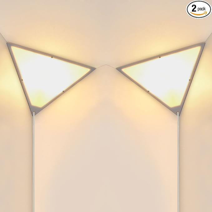 Corner Lights for Living Room, 2 Pack Corner Light with Switch, Plug in Ceiling Light with Acrylic White Shade, Modern Triangle Lights for Wall, Corner Lights for Bedroom, Office, Apartments