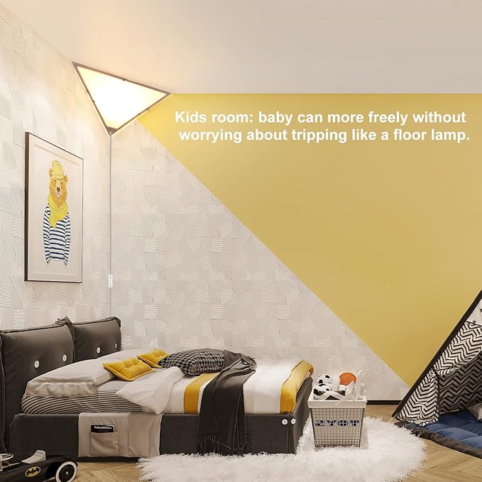 - 【Multi- Application】Corner lights for living room, bedroom, entry: it fits comfortably in a corner instead of taking up space. Reading nook, kids room: baby can move freely without worrying about tripping like a floor lamp. Apartment, office: corner wall light will illuminate every dark corner for you