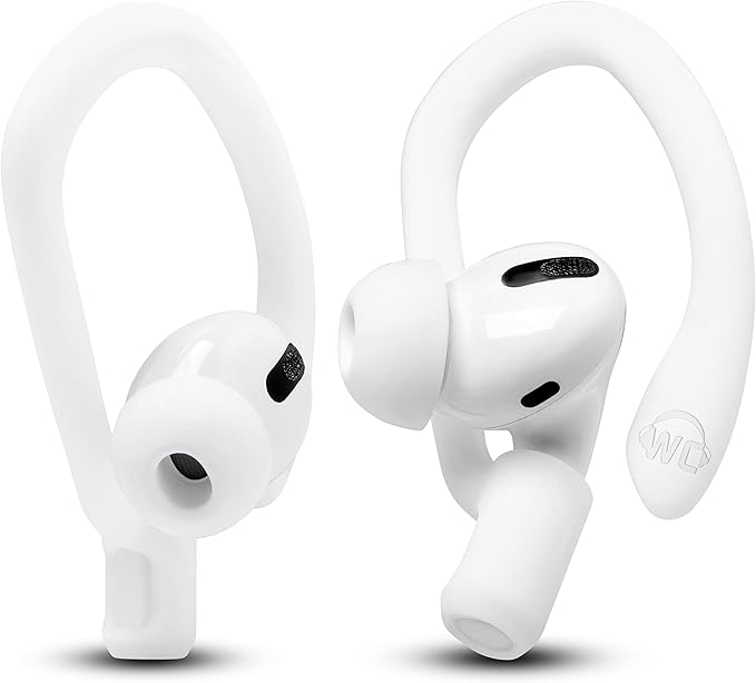 WC HookZ - Patented Upgraded Over Ear Hooks for AirPods Pro 1, 2 & AirPods 1, 2 & 3- Two Size Pairs Included in Package, Unique Left & Right Hook, Made by Wicked Cushions | Winter White