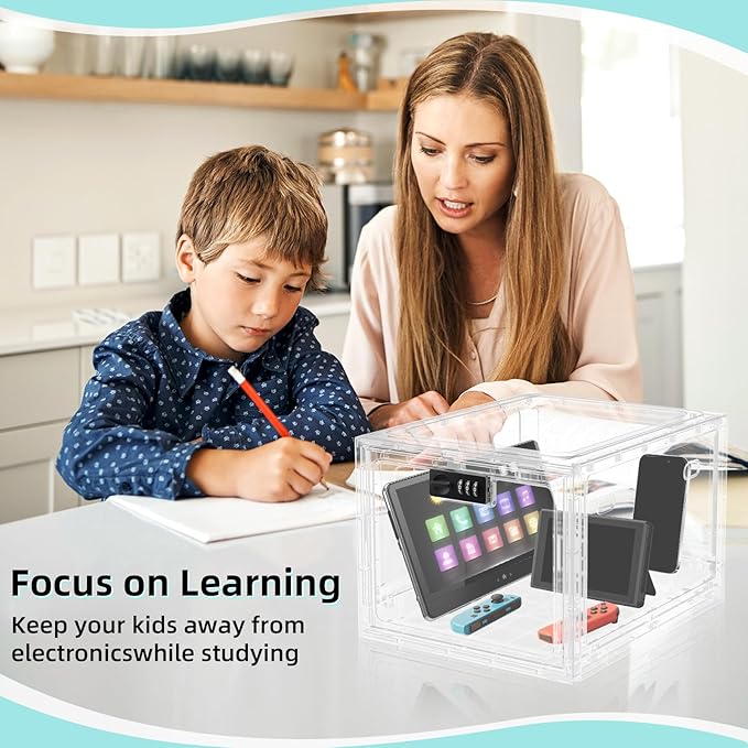 HOLYHY Medicine Lock Box for Safe Medication Storage, Large Refrigerator Lockable Storage Box for Kitchen Food Safe, Phone Jail iPad Tablet Lock Boxes for Kids Home/Office (Clear)