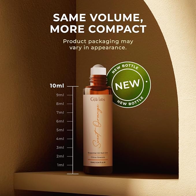 Gya Labs Sweet Orange Essential Oil Roll On For Instant Revitalization & Joyful Well-Being - 100% Pure Natural Uplifting Citrus Leak-Proof Travel Size Roller, Pre-Diluted With Carrier Oil - 0.34 fl oz