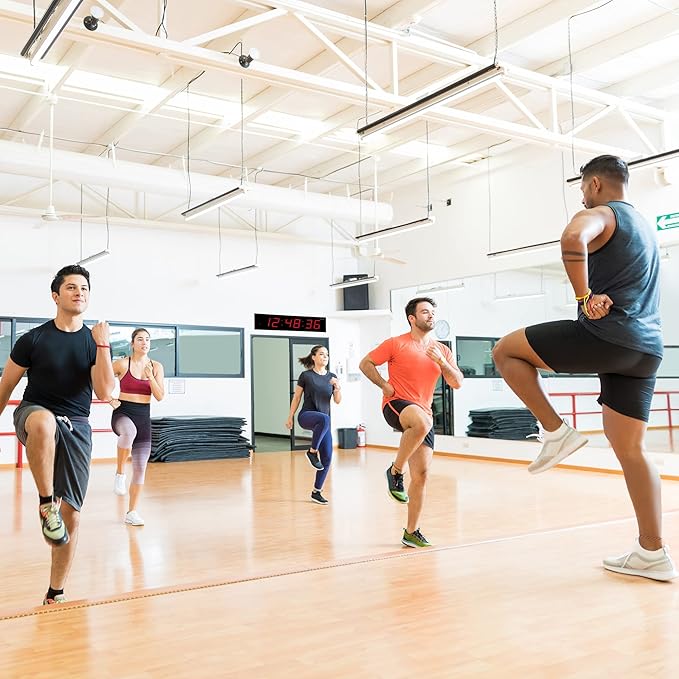 - GIANT 5-FOOT STYLISH DIGITAL CLOCK – Supersized timekeeper with AM/PM indicator, jumbo 8” digits, and 6 brightness levels for maximum visibility; powered by a 10-ft AC adapter. Sleek 60” frame with slim silhouette, chic black border, and vibrant LED display that complements any décor.