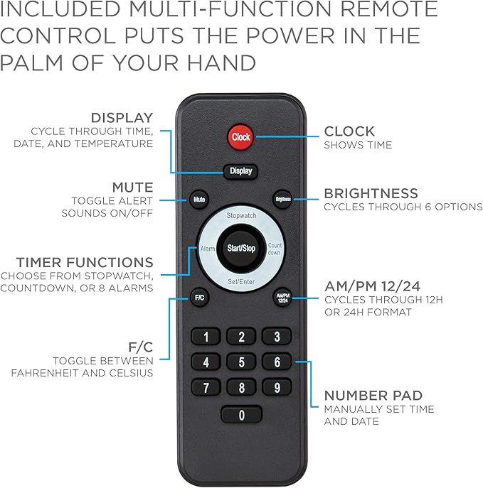 - 8 ALARM OPTIONS – Choose from 8 unique alarm and timer settings; perfect for morning alarms, reminders, or daily routines. Easily set or adjust with the included remote control.