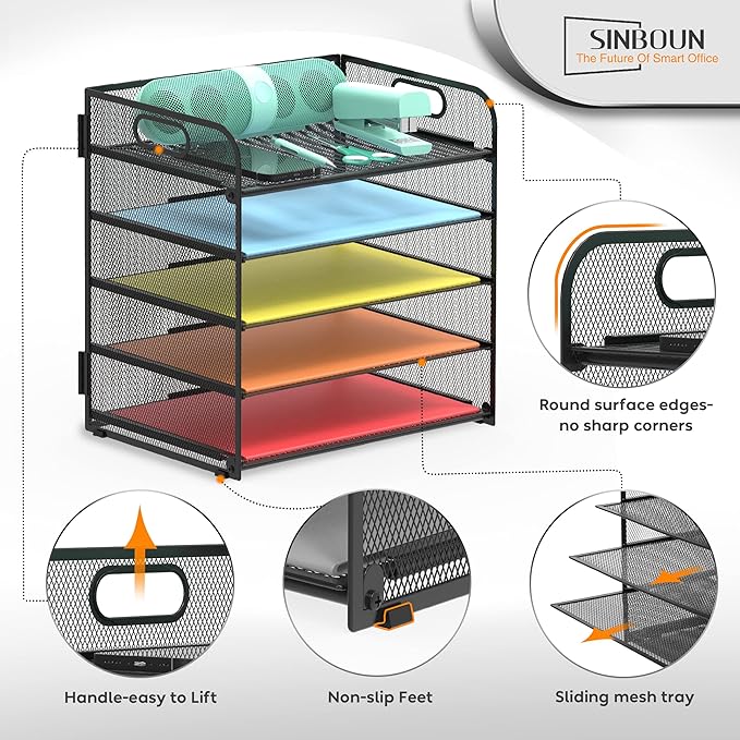 - The 5 tier letter tray with handle pull out trays of well-thought out dimensions that will keep the stuff you need organized, at hand