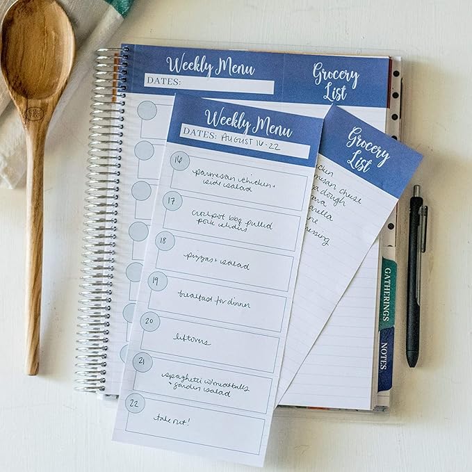 Large Meal Prep Planner, Spiral, Pull-off Grocery Shopping Lists, Kitchen Management, Tabbed Dividers, Laminated Covers, Easy Organizing, Avoid Food Waste, Folder Pockets, Covers a full Year - Eccolo