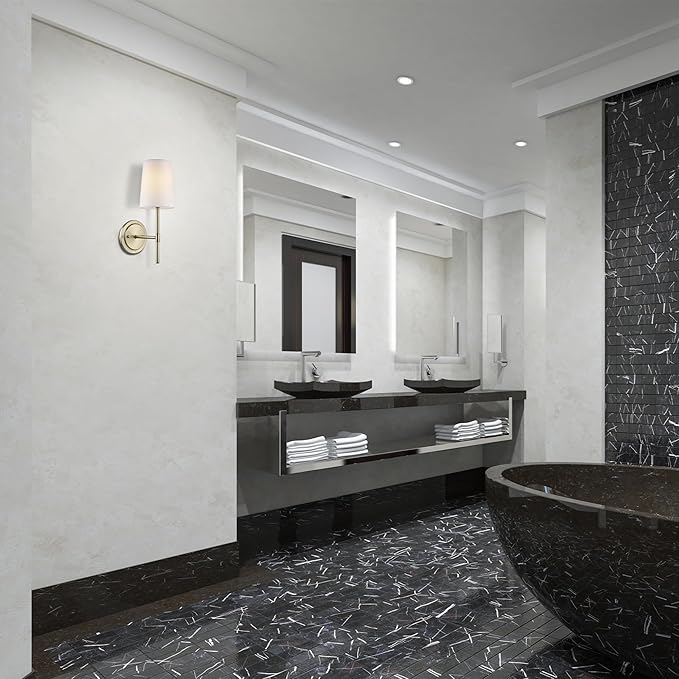GLOBE Electric 51861 Clarissa 1-Light Wall Sconce, Matte Brass, White Fabric Shade, Bulb Not Included