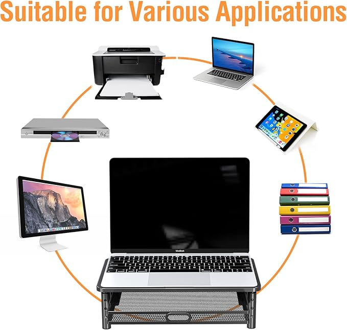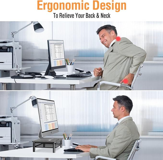 - Sturdy Metal Stand Riser - This monitor stand riser is of high-quality manufacturing and materials. It can hold up to 44 lbs and is sturdy enough to ensure the stability of your monitor, computer, PC, printer, or books.