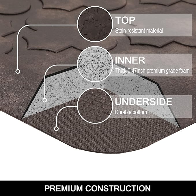 HEBE Oversized Kitchen Mat Cushioned Anti Fatigue Comfort Floor Mat 17.3"x48" Waterproof Non Slip Kitchen Rug Runner Laundry Room Rug Floor Carpet Heavy Duty Comfort Standing Mat Pads,Brown