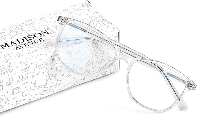 Madison Avenue Blue Light Blocking Glasses Anti Eyestrain UV Glare Blue Light Glasses for Women TV Phone Computer Gaming Eyeglasses (Clear)