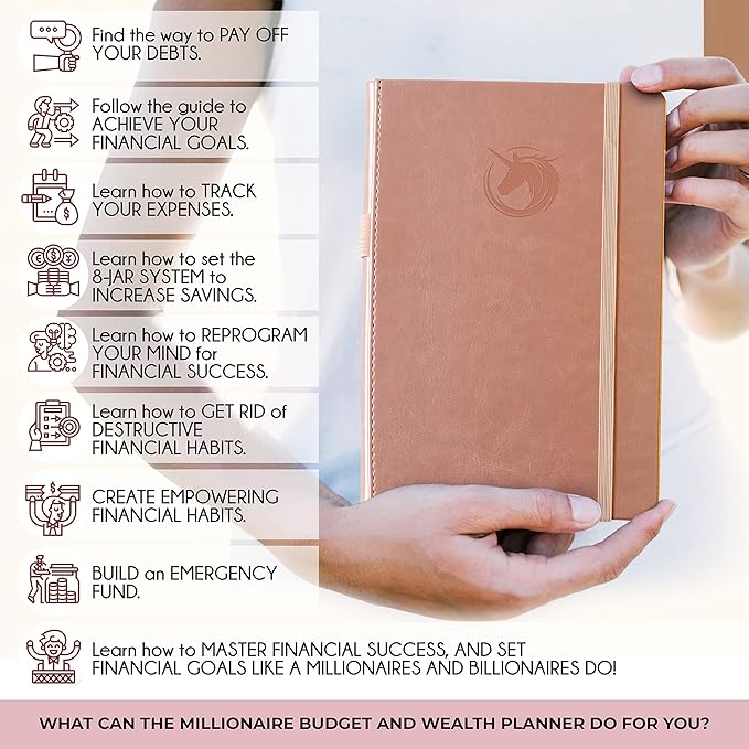 - UNDATED BUDGET PLANNER - Undated budget planner is a deluxe planner & wealth planner showing you how to reprogram your mind to master financial success. A5 Size (5.8 x 8.3 inches), thick paper 100 gsm, inner pocker, financial success road map, 12 monthly planning overviews made in high quality lay-flat binding with 144 pages of impactful budgetting lessons, includes 3 sheets colorful budget affirmations and stickers. The millionaire secrets helps you to find a way to pay off your debts, track your expenses, increase savings, and build emergency fund.
