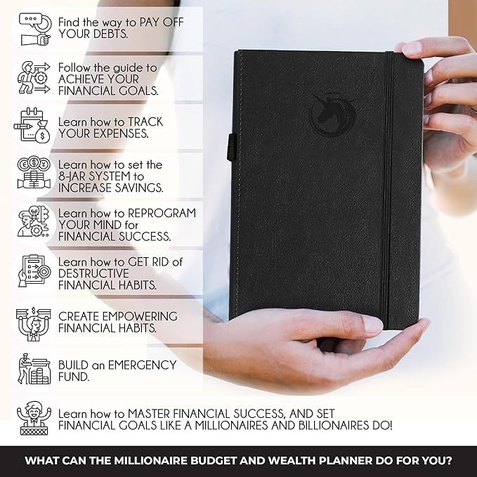 - UNDATED BUDGET PLANNER - Undated budget planner is a deluxe planner & wealth planner showing you how to reprogram your mind to master financial success. A5 Size (5.8 x 8.3 inches), thick paper 100 gsm, inner pocker, financial success road map, 12 monthly planning overviews made in high quality lay-flat binding with 144 pages of impactful budgetting lessons, includes 3 sheets colorful budget affirmations and stickers. The millionaire secrets helps you to find a way to pay off your debts, track your expenses, increase savings, and build emergency fund.