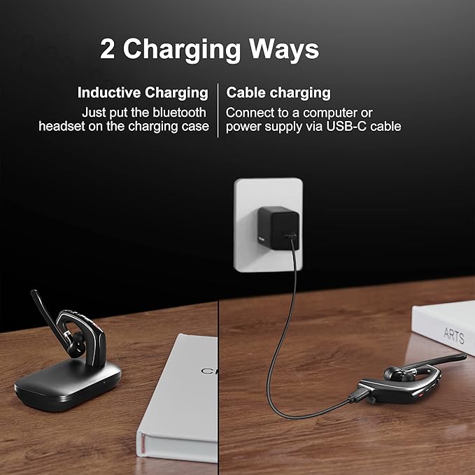 Bluetooth Headset V5.1, Wireless Headset with 500mAh Charging Case, Noise Canceling Mic for Driving and Office. (USB-A Adapter Included)