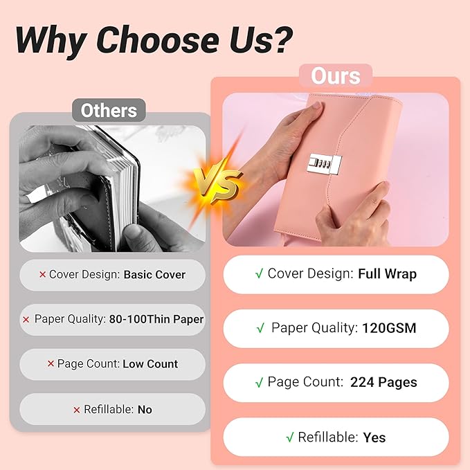 - USE AND SECURITY - Diary lock is easy to set, locked up tight. We have clear instructions to share you how to use the diary with lock.