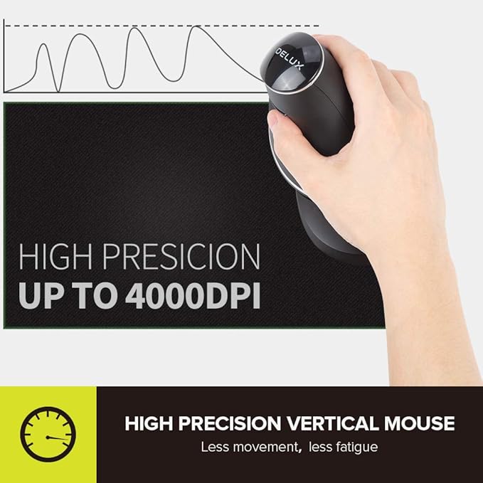 DeLUX Wireless Ergonomic Mouse with 4000DPI, Vertical Mouse with USB Receiver and BT1 + BT2, 6 Buttons and Removable Palm Rest for Laptop Computer and Carpal Tunnel (M618PD-Black)