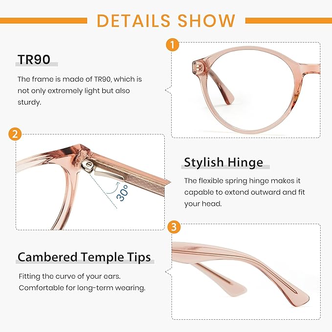 - Fashion Oversized Round Frame Design: These oversized round glasses are designed to suit various face shapes and offer a stylish, modern look. Perfect for women who want to make a fashion statement while protecting their eyes from computer visual syndrome (focus loss, blurred vision, fatigue, etc.).