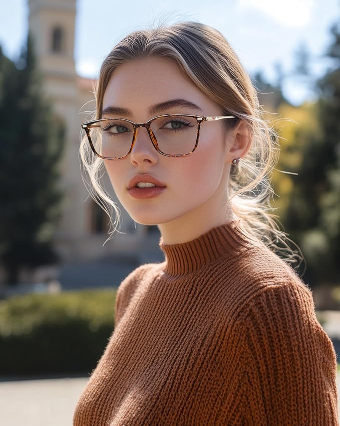 - TORTOISESHELL SQUARE FASHION DESIGN large frame design friend for men women, flexible spring-hinged temples adjustable up to 145° to better fit various face shapes, Metal hinges with longer lifetime than other plastic ones.