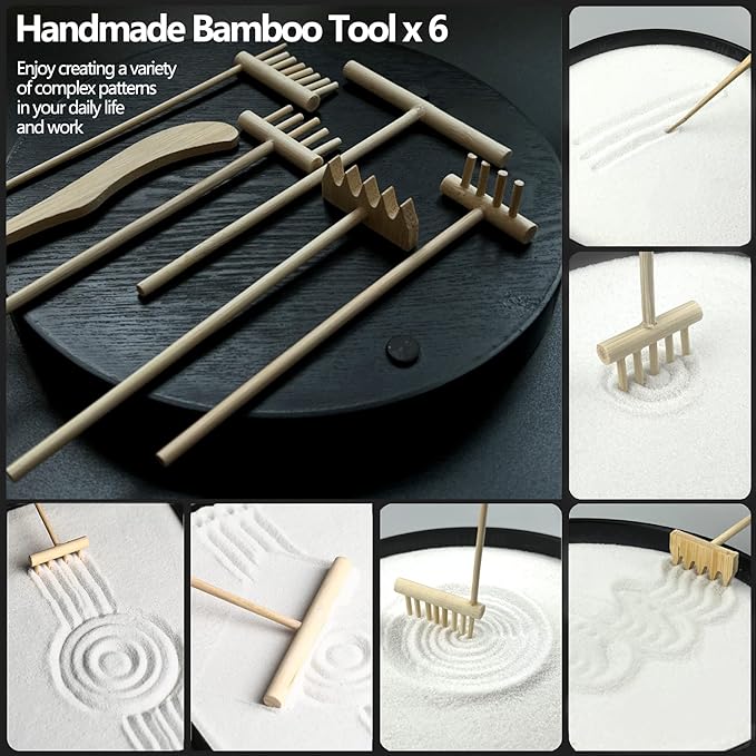 Zen Garden for Desk Japanese Zen Garden Kit 8 Inch Large Round with 6 Sand Rake and Accessories Tray Mini Desktop Zen Decor for Home Office Gift Therapy Relaxation Meditation
