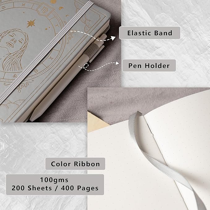TIEFOSSI Constellations Dotted Journal Notebook-A5 Writing journals with 100gsm 400pages Paper, Hardcover Bullet Organizers Notebook for Women, Men, Teens (Virgo)