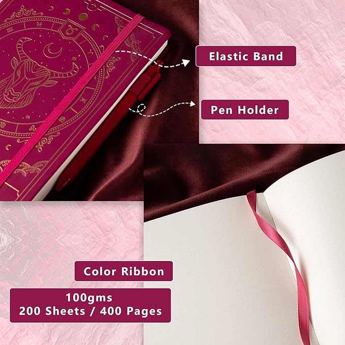 TIEFOSSI Constellations Dotted Journal Notebook-A5 Writing journals with 100gsm 400pages Paper, Hardcover Bullet Organizers Notebook for Women, Men, Teens (Taurus)
